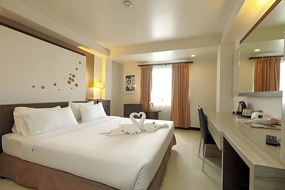 DELUXE DOUBLE ROOM is 312 square feet and includes a queen-size bed 150-154 width plus extra beds on demand, satellite tv , cable tv, hairdryer, tea and coffee making facilities , and safe and is Wheelchair-accessible.